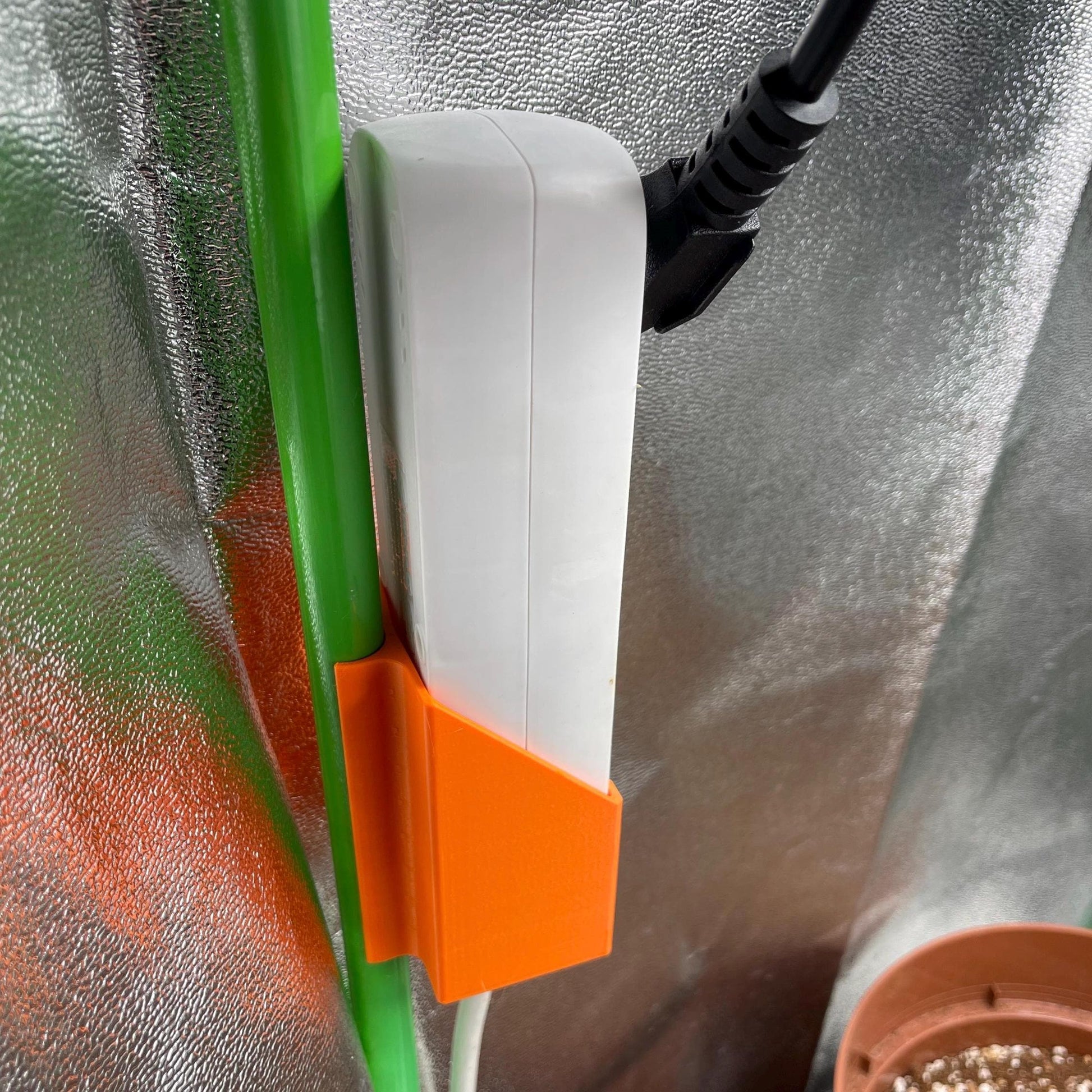 Bring more order to your grow tent with our power strip holder for 16mm poles. This practical clip mount allows you to securely attach a power strip (up to 40mm high and 50mm wide) to the tent pole. Simply clip it on and slide the strip in from above – no drilling, no gluing required!