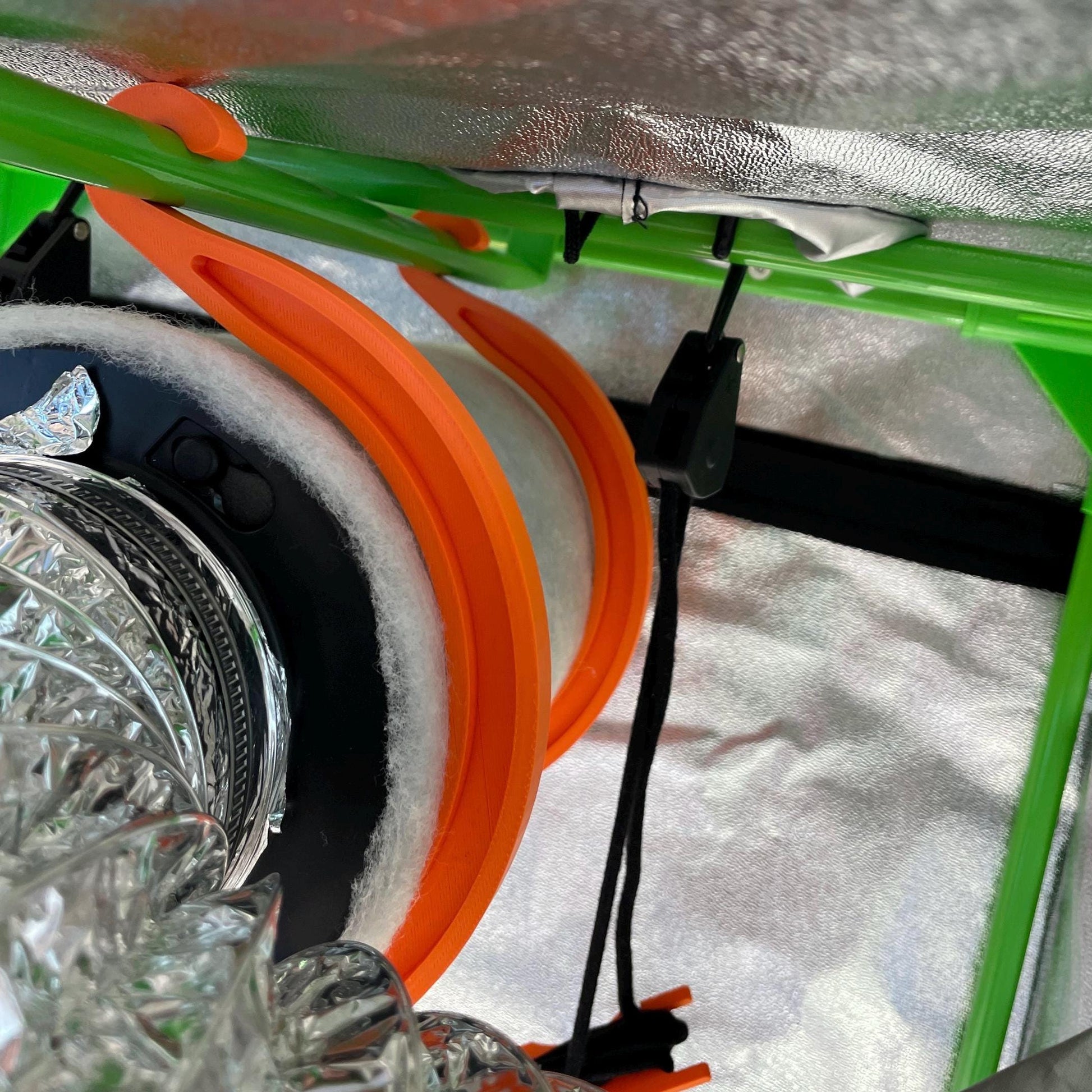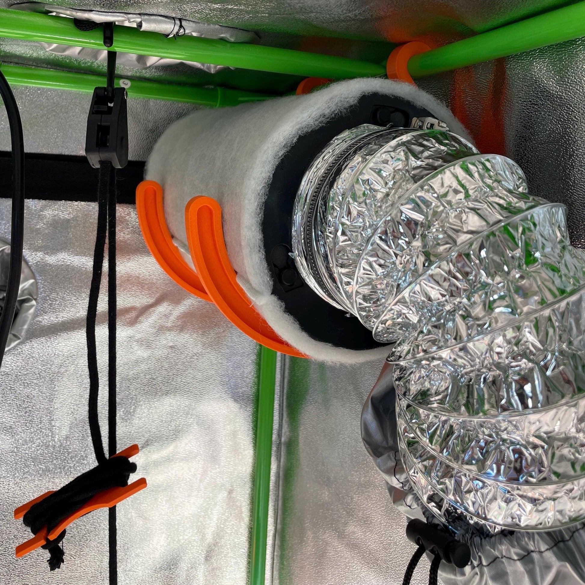 Our filter holders for grow tents allow you to securely and space-savingly mount your activated carbon filter in your grow tent. The robust mount is perfect for efficient growers and can be easily attached to tent poles. Thanks to the clever design, you can simply place the filter into the holder.